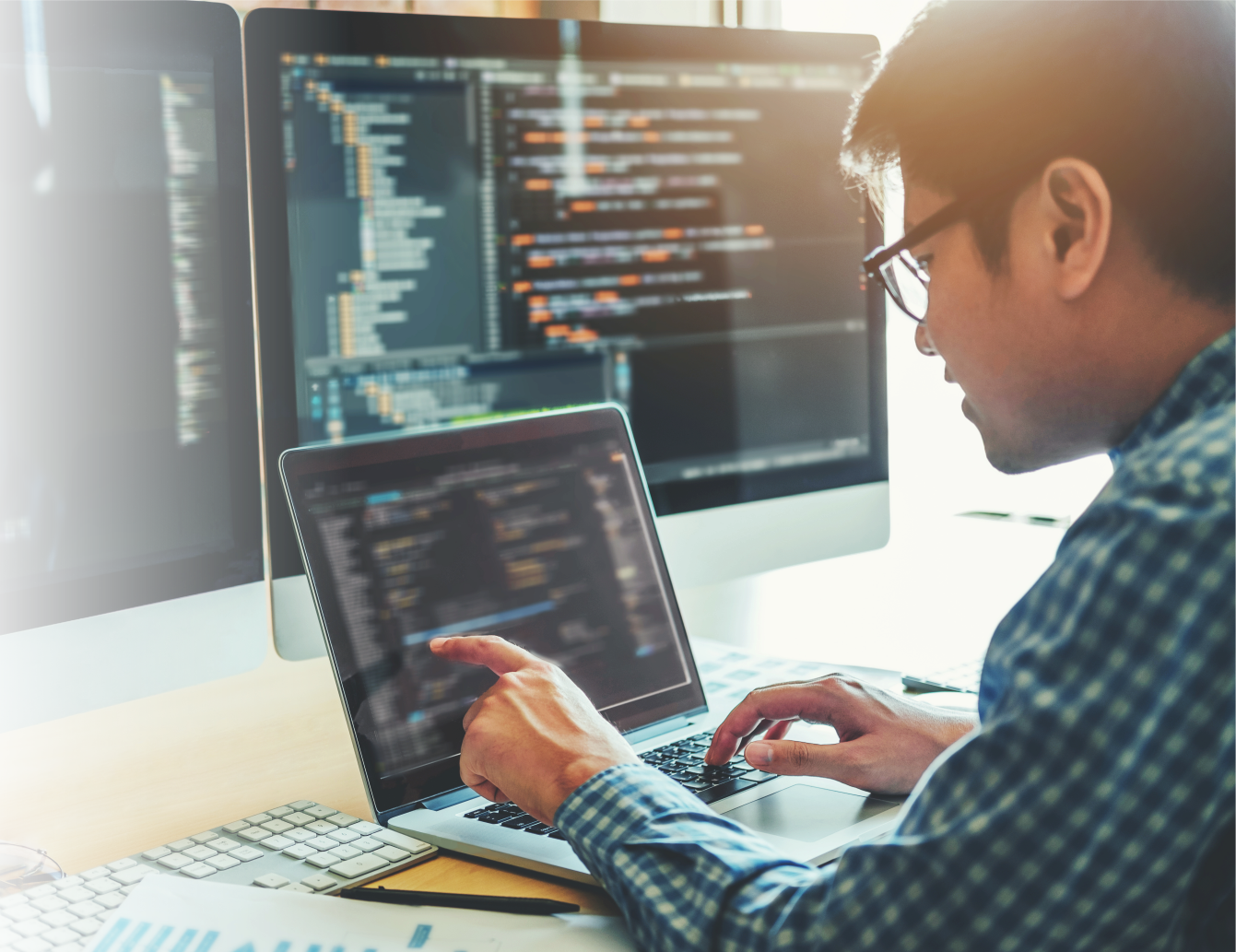 Kami juga menyediakan pengembangan perangkat lunak untuk aplikasi web dan android yang dapat disesuaikan dengan kebutuhan perusahaan anda. Dengan fokus pada pengembangan aplikasi yang memenuhi standar keamanan, kinerja, dan tampilan yang diinginkan, anda memiliki kontrol penuh atas fitur, desain, dan fungsionalitas aplikasi.